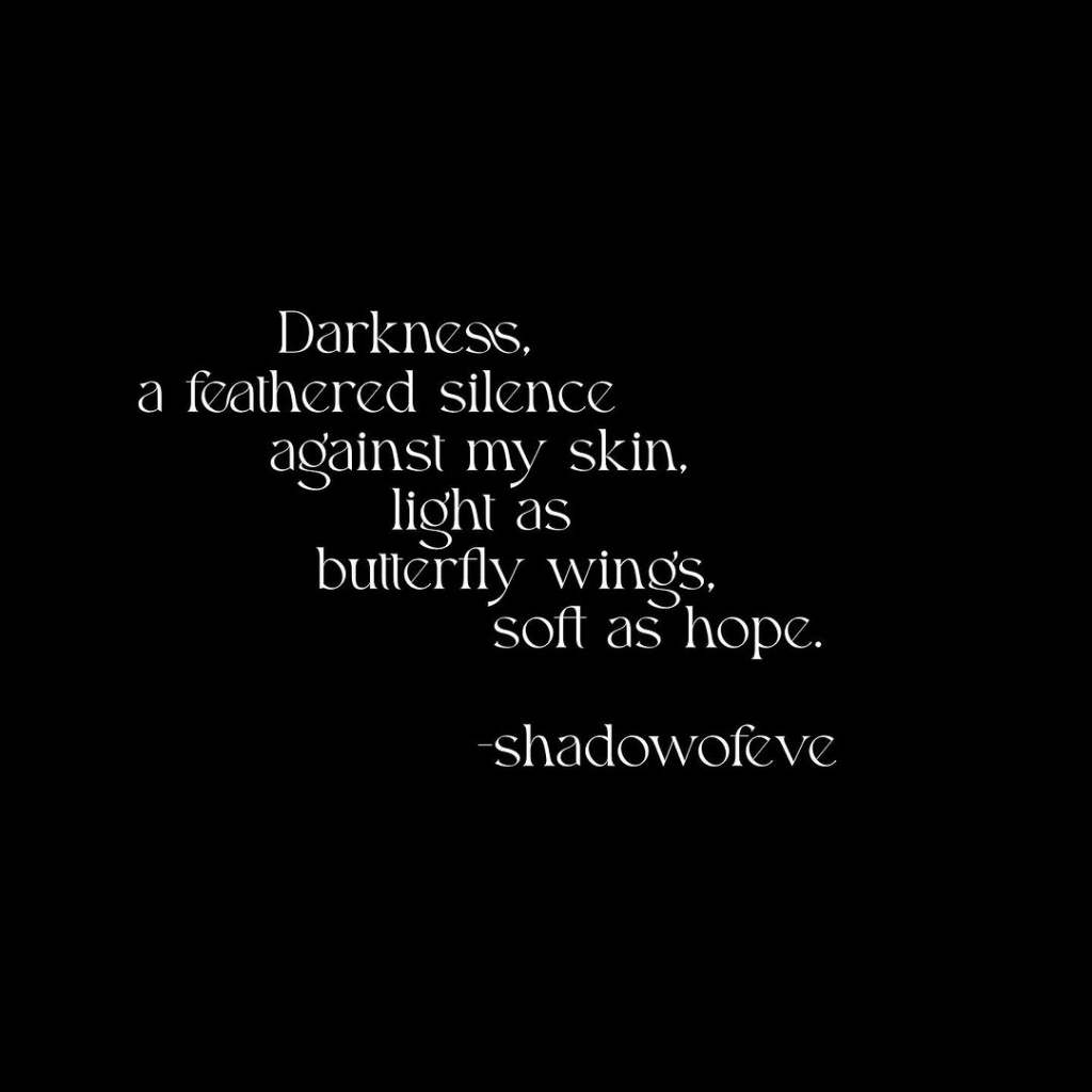Darkness,a feathered silenceagainst my skin, light asbutterfly wings,soft as hope.